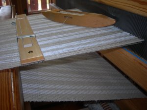 I love the quietness of my Swedish looms, soft clacking of wood, silence of Texsolv or string heddles, the whisper of a shuttle passing through the shed. In winter, quiet music playing; in summer, open windows, birdsong and the wind in the pines.