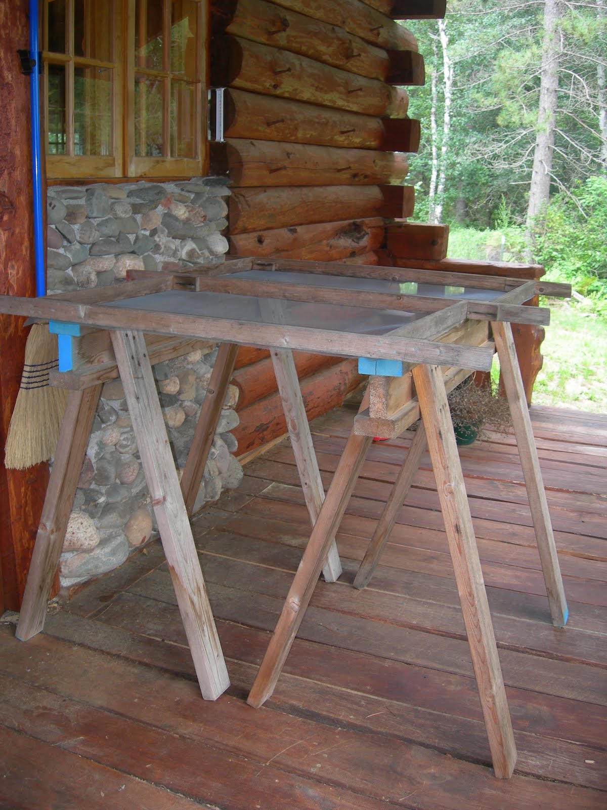 3. I saw a hummingbird first thing this AM at the fuschia. The day I took the photos, after buzzing around me, he went over to some daylilies, then sat on the wire fence for a couple minutes. I was too far away for that photo.Mike, I've seen hummers sit many times on tree branches, fences, and I have a new feeder with two "rings" around that they can perch on while feeding. I must get that feeder hung out on the porch, perhaps I could get a photo of one of the hummingbirds sitting on it. I normally don't like to multi-task like that, but that day, things like the wool soaking, working on dial-up, all take so long, I might as well be doing other jobs in-between.My drying racks are sawhorses, built by my late husband, higher than usual, and simple wood frames made from scrap wood with fiberglass screening. Our humidity has been so high since I washed the wool it still feels almost as wet as when I did the wash and rinsing! Hoping the humidity breaks soon so the wool will dry and I can get the next fleece washed and drying. Setting up for some carding and spinning this coming winter.