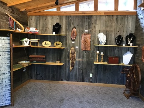 Gallery space for Shuttle Works Studio, Celtic Wolf Studio, and Heirloom Custom Wood Designs.