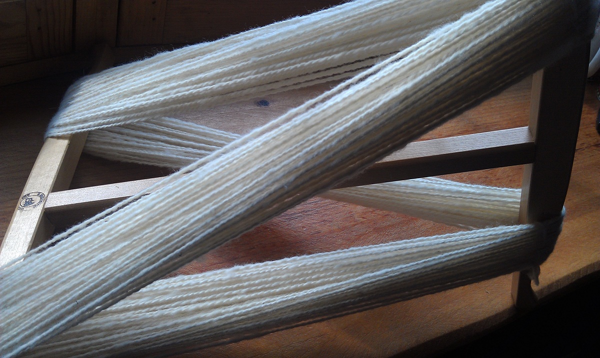 | Wool blanket warp using Swedish Tuna wool, doubled. |