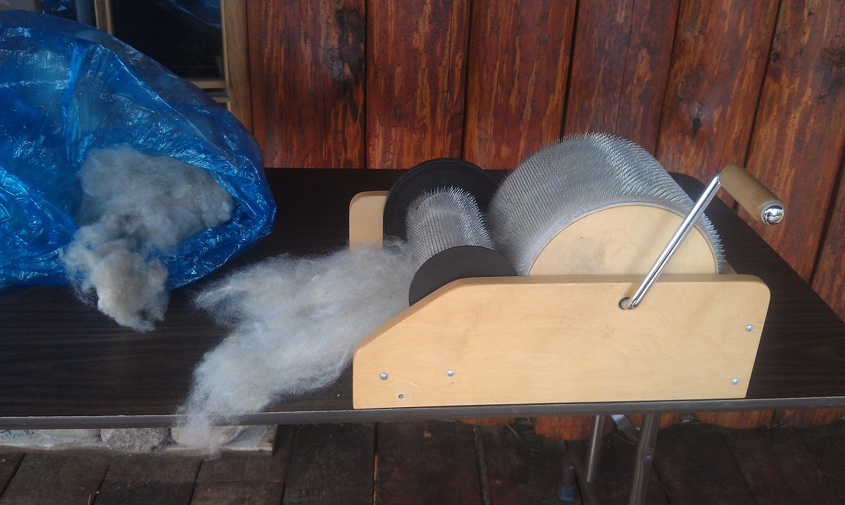 We were shown how to twist and tie the fringe, and later than evening I stayed up quite late to finish the fringe on my blanket. The next day, fulling was done, by Becky, using a washer and dryer.