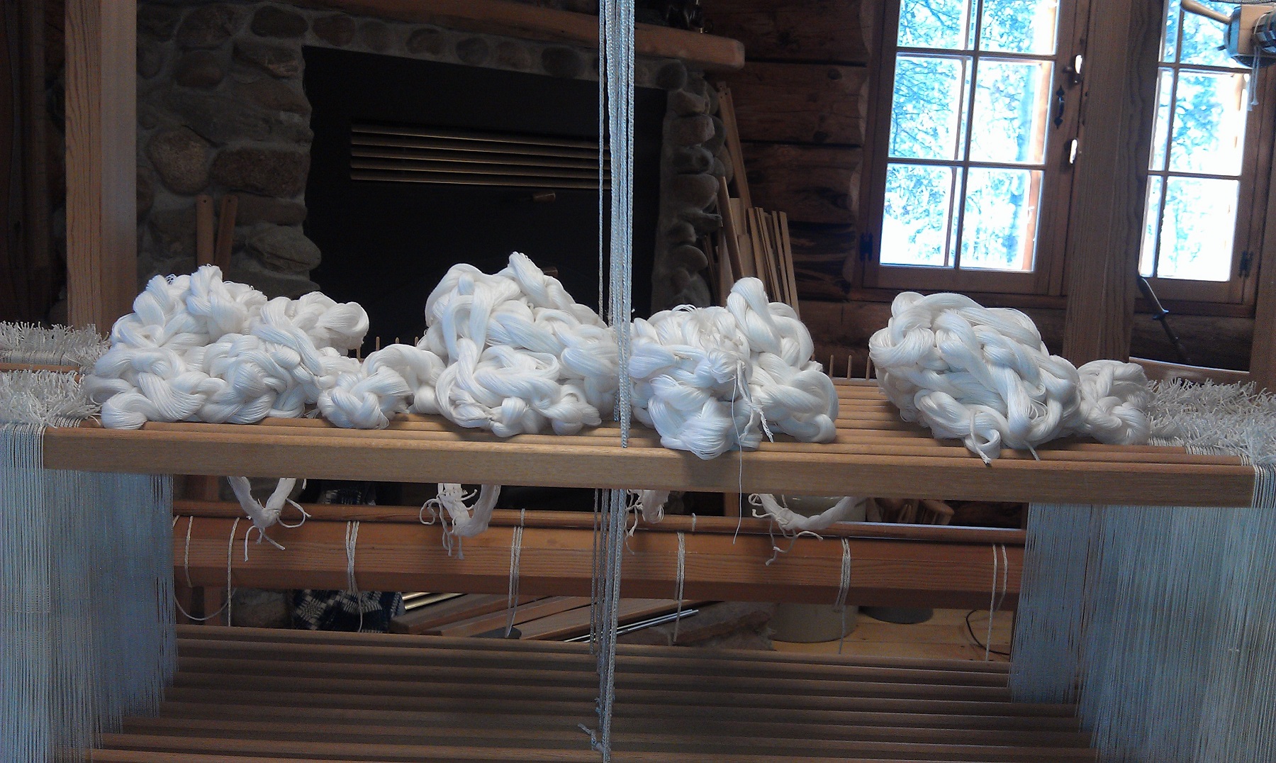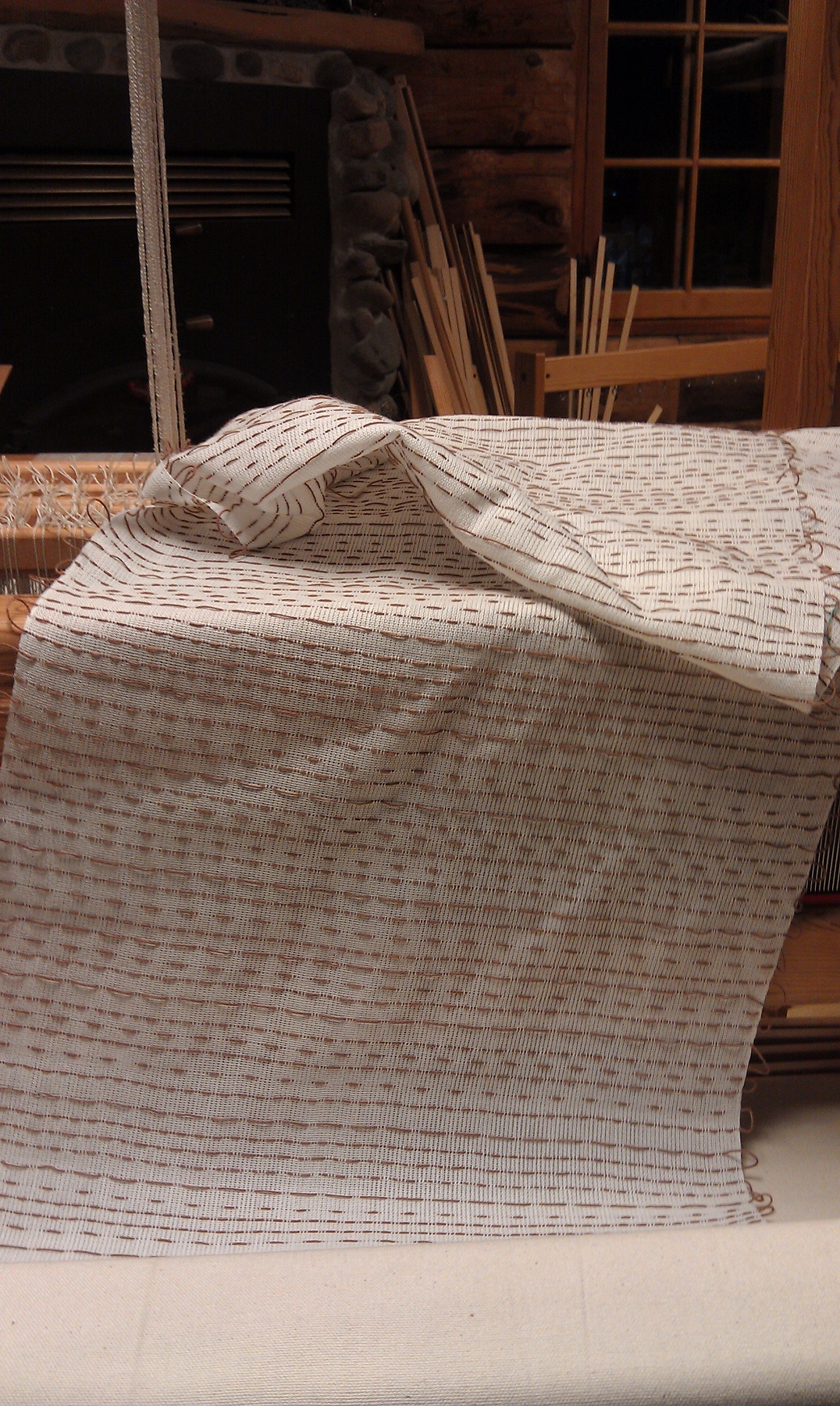 Random single threads showing (white) should not be there. It was suggested to me to re-sley to a bit wider sett, so I need to do a bit of research for sett for 16/2 cotton in satin weave. With more sunny days (I hope!) it would be a good time to do this, then enjoy weaving in the sunshine.