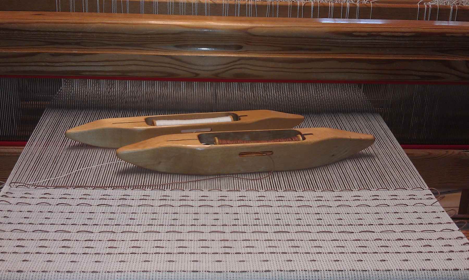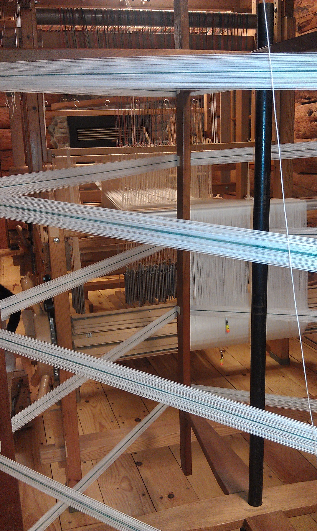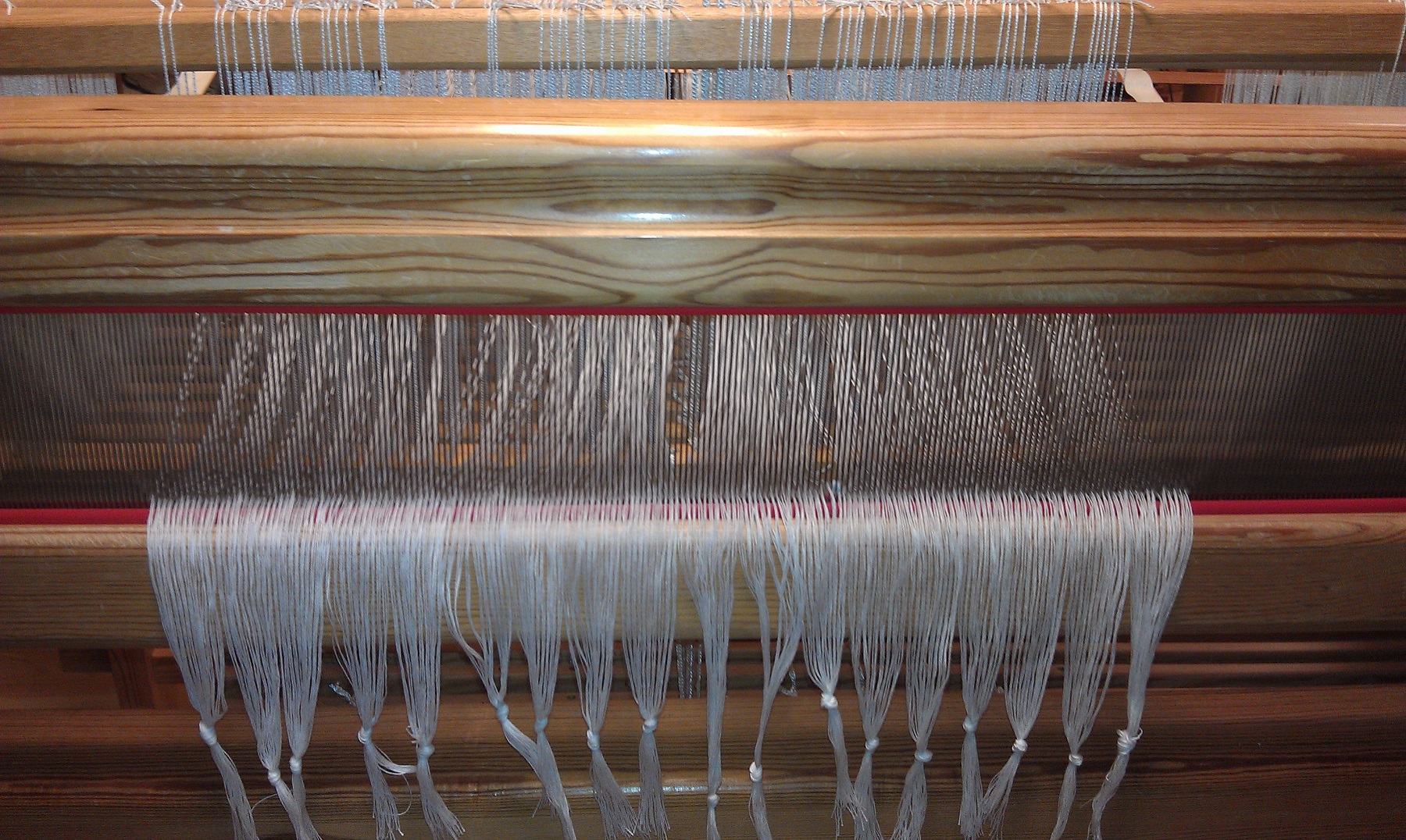 I’m having issues with the warp on the drawloom. I really like weaving with the Bockens 16/2 cotton, but the threads stick together and it takes treadling a couple times at this sett to maybe have a clear shed, or clear each shed with a weaving sword.