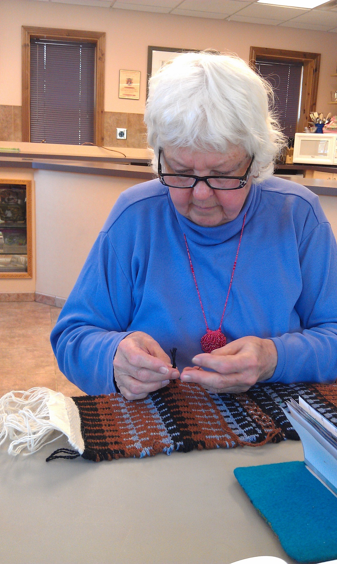 Both Carol and Louise have a great interest in the Norwegian weave, Krokbragd, and that is what they have been working on for the past several months or more.