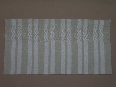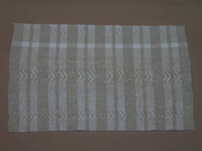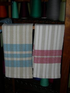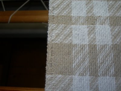 Now, I am thinking of other ways of finishing hems. Hand-hem, hemstitched, knotted, and others. What I am trying to keep in mind is how the particular thread looks after repeated washings, even hand washing. Cottolin, after repeated washing can get a little ratty looking on the ends of the threads, something I want to avoid. So now, I must delve into my weaving/fiber library and find options that will stand up to wear and care.