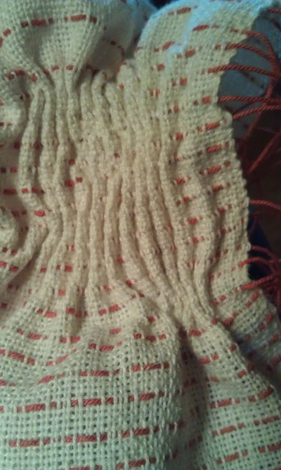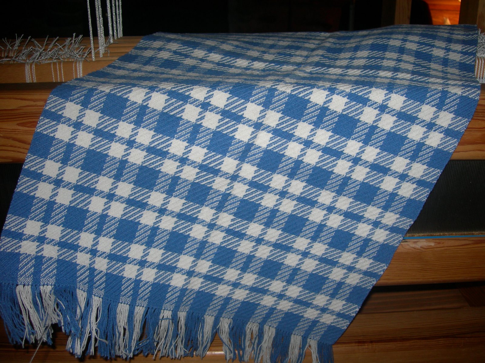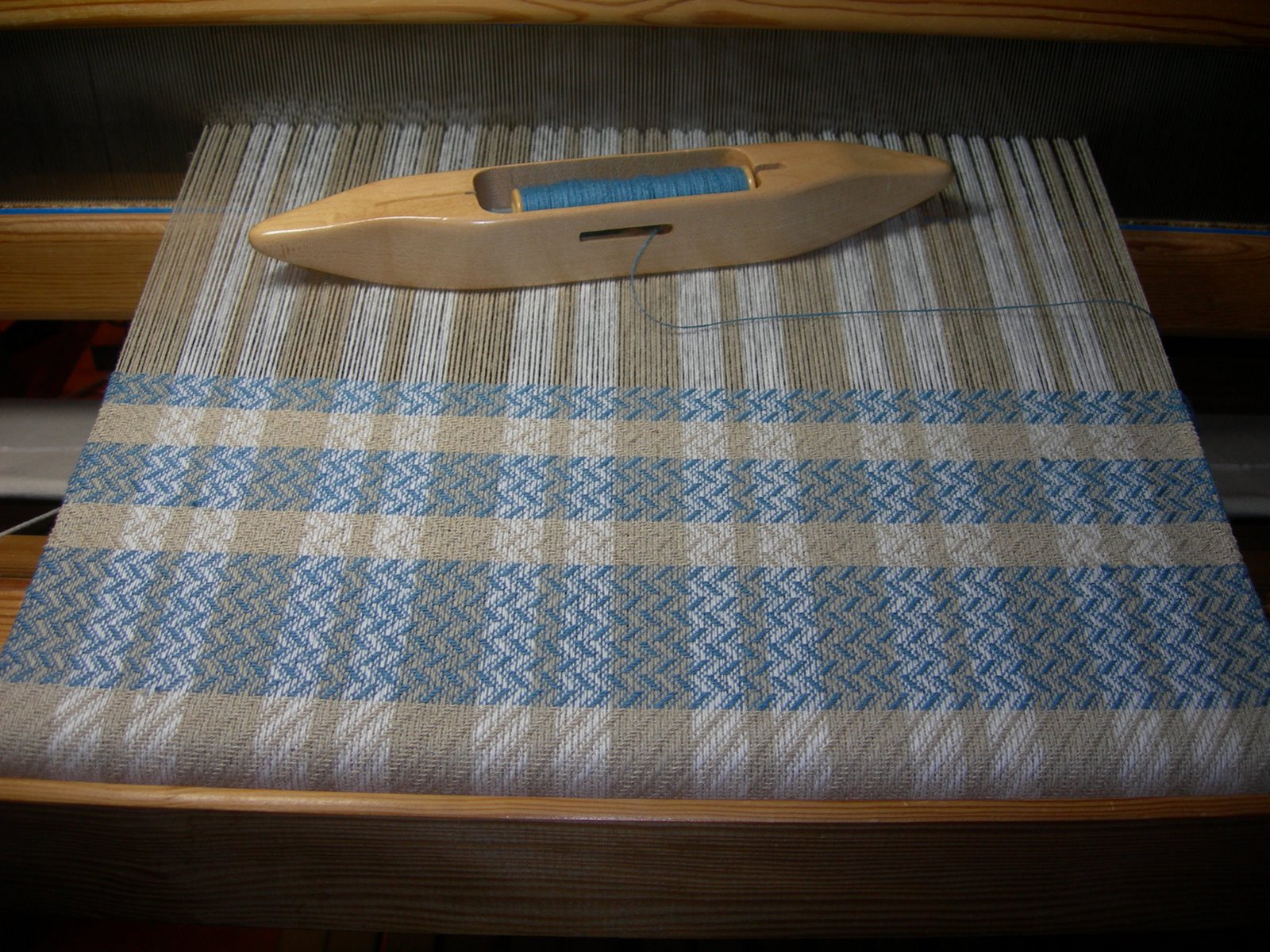 There is now a finer warp on the loom, 16/2 Swedish cotton, and I’m looking forward to seeing how the next scarves turn out!