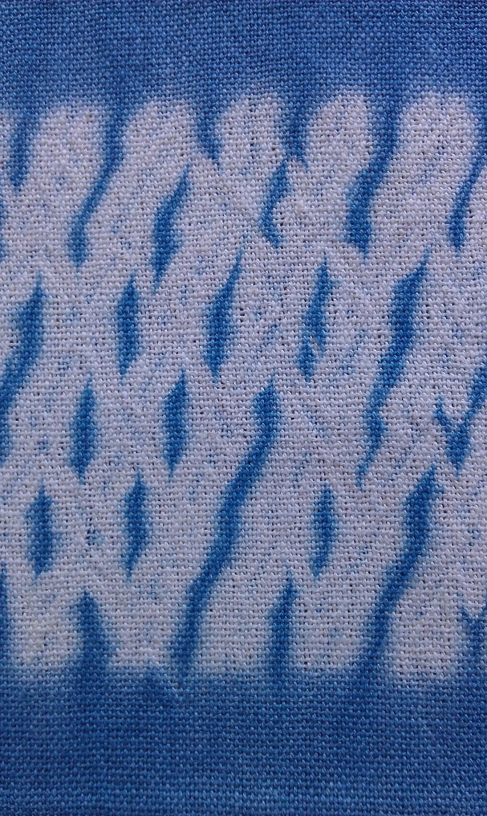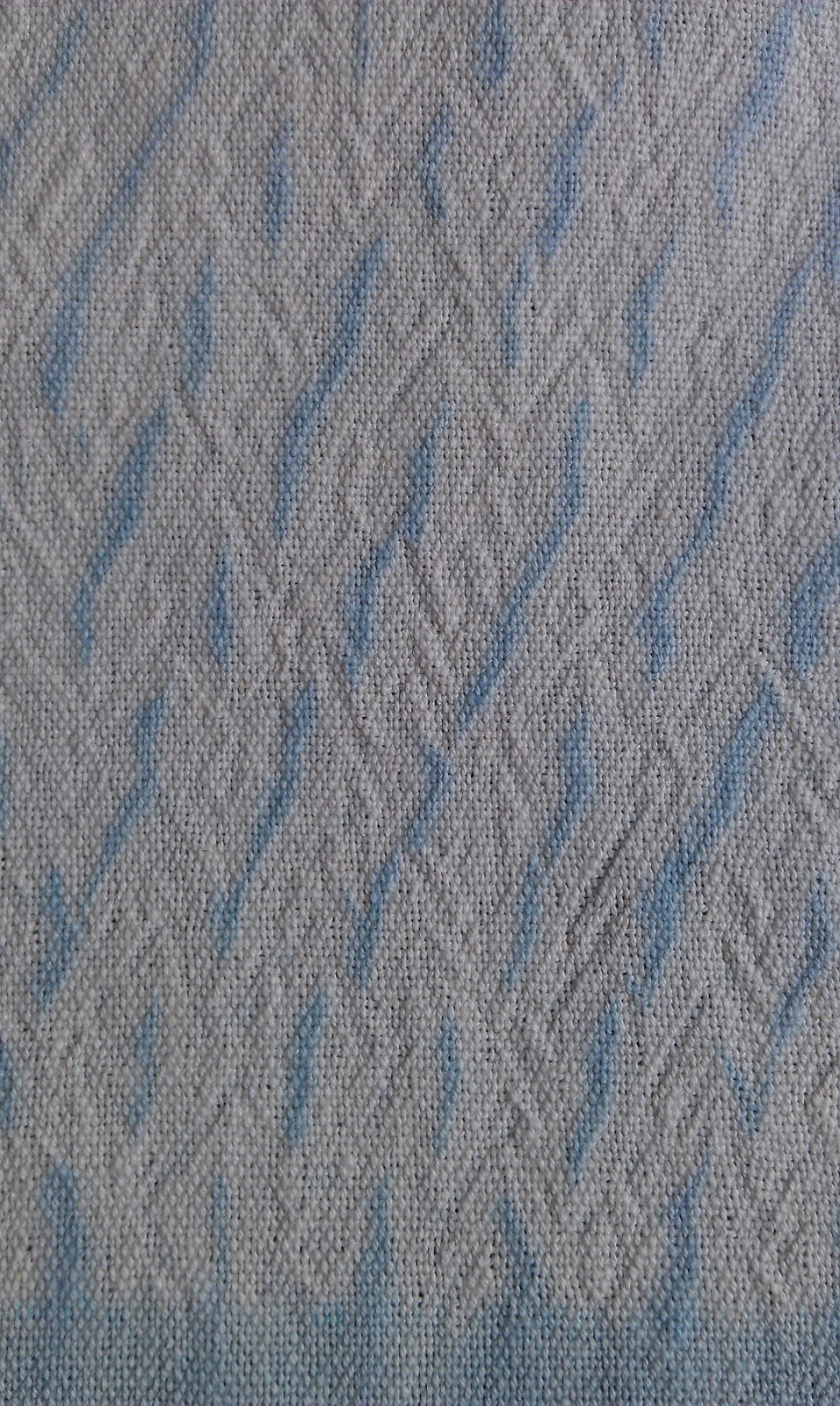 This scarf above was dyed in a more diluted indigo dyebath, coming out quite a light blue, and unevenly dyed, exactly the effect I was going for. I had done a little marketing research, showing the scarf in the previous post and a few samples to two women I know. They liked them all, and asked if I would have any lighter color scarves, to wear with stonewashed jeans in summer.