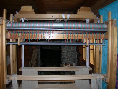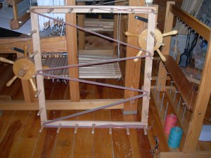 The drawloom has been sitting here, temporarily abandoned while I have been working at weaving towels and cranking socks to sell, and today I couldn’t stand it any longer. I had to have part of a day for my personal weaving interest of making progress on the drawloom.