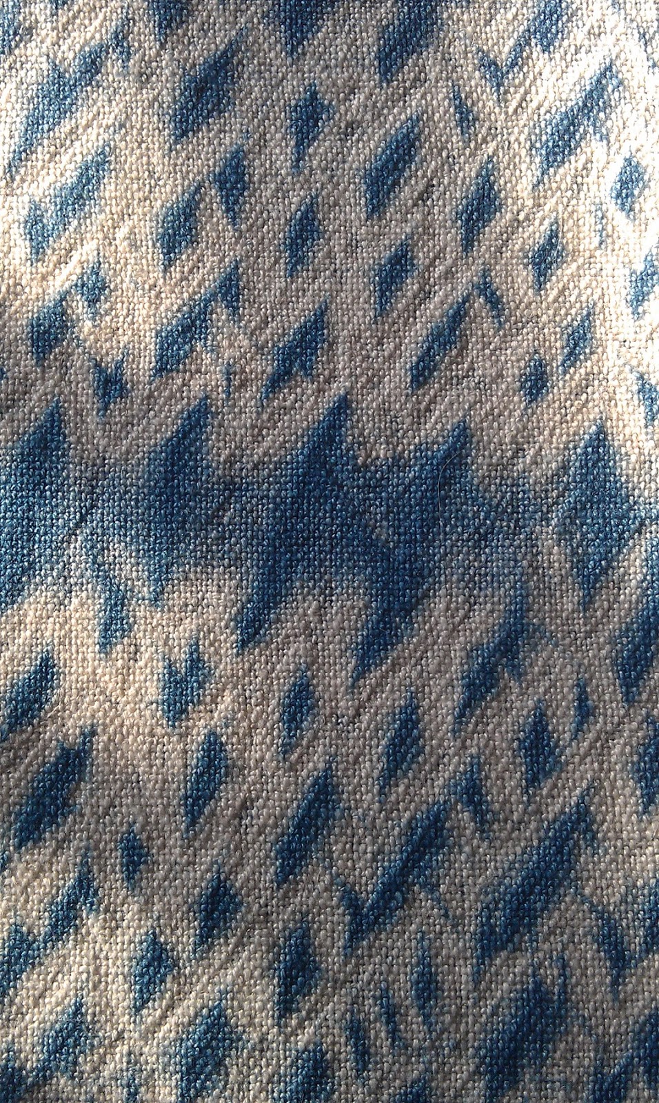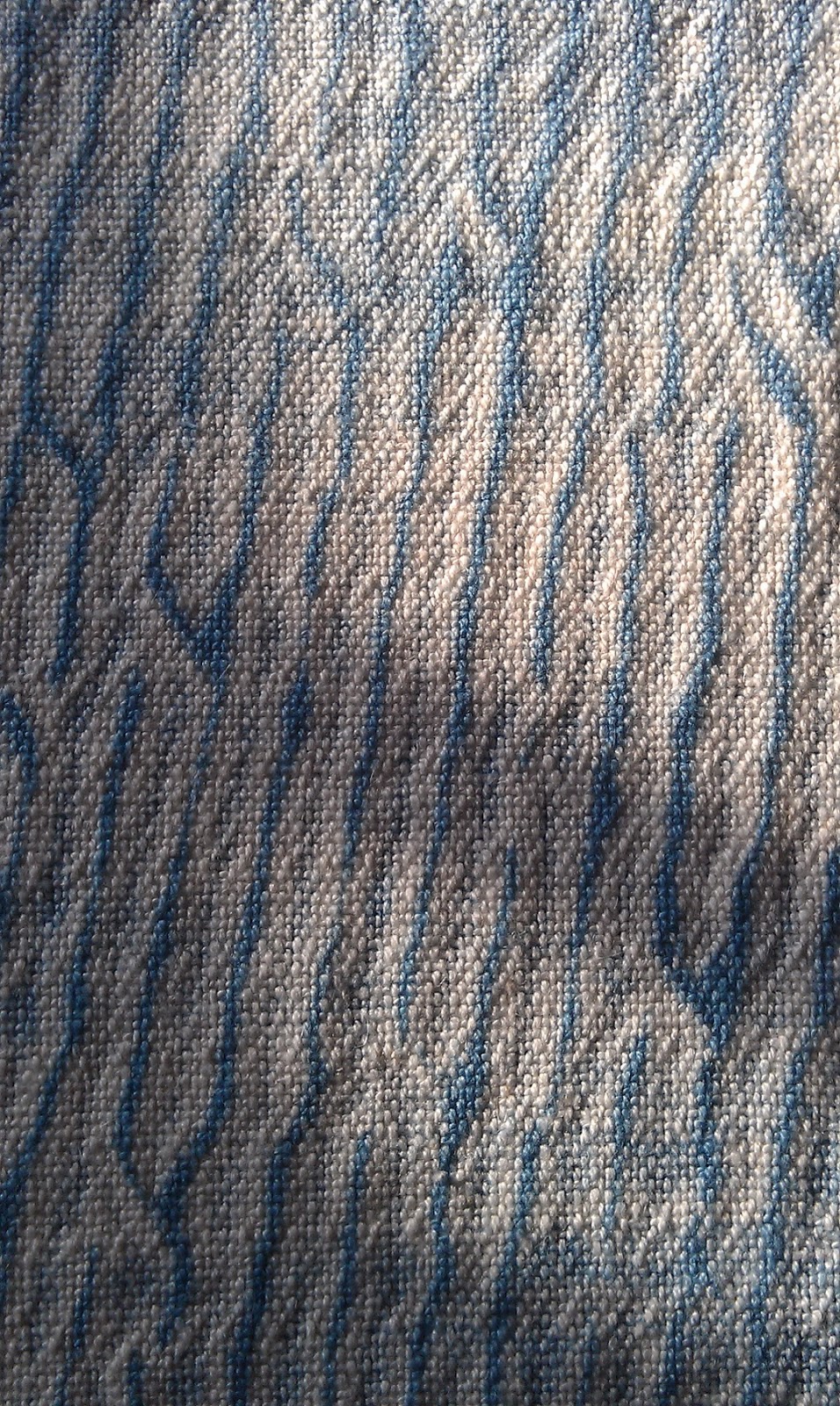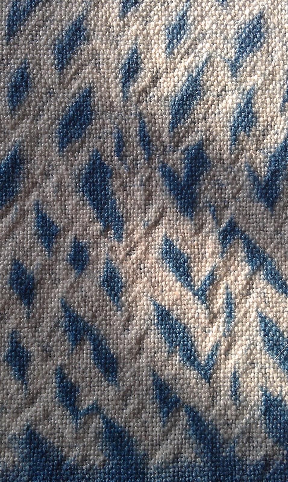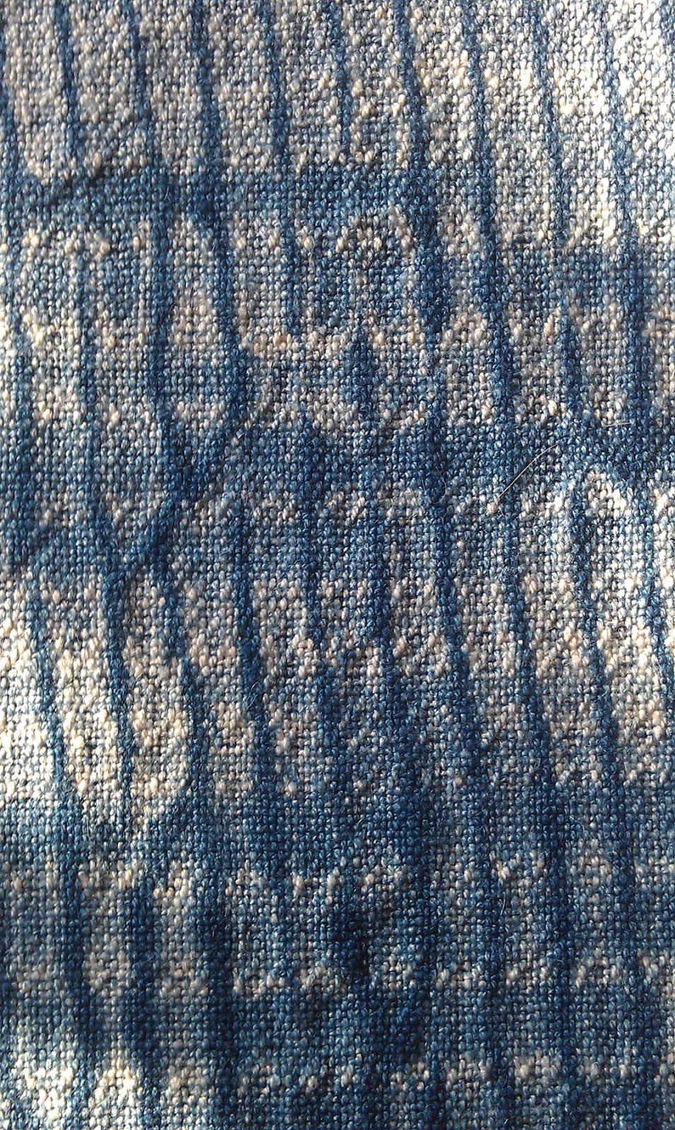 I’m finishing weaving a warp, hoping it is long enough for a scarf and fringe, so I can hand-stitch a design on, then indigo dye. Hopefully I will get it completed before the cataract surgery and show it here. If I do an overall free design instead of just on borders, it will take longer to stitch/gather/tie before dyeing. I’d like to have a new warp on the Glimakra Standard before the surgery, too, so when I can see well enough, I can sit an weave again. So that warp and ideas for the scarves are in the planning/sketching stage.