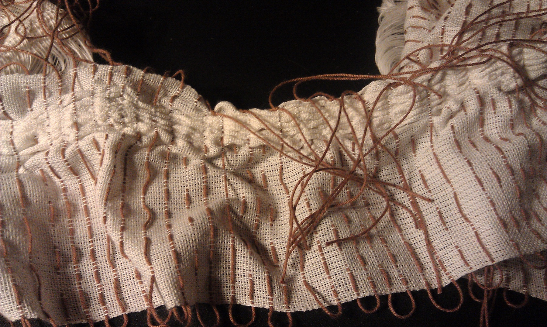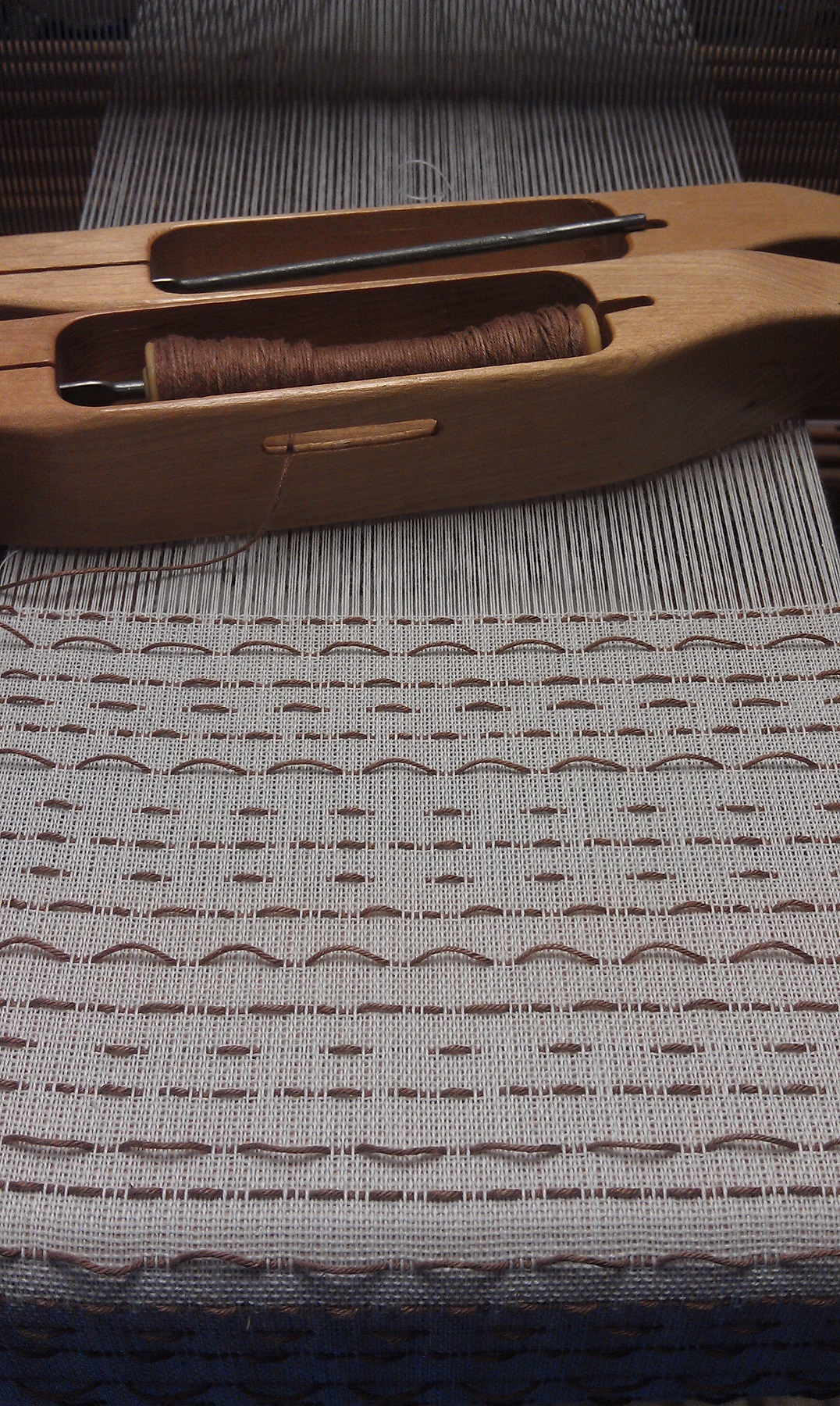 About the same time all this was going on, a new 15 yard warp was made, beamed, and threaded, so I’ve be able to demonstrate and explain the woven shibori process to visitors.